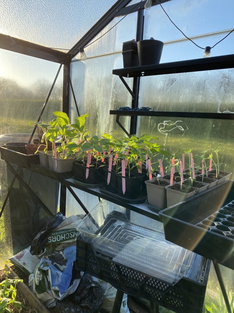 Heb je een kas waar je ze gaat uitplanten, zet dan de potjes daar neer om af te harden, voordat je ze uitplant.
