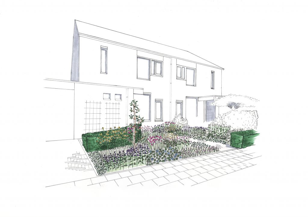 “Bedankt voor het leuke tuinontwerp! We gaan binnenkort zelf beginnen aan het aanpassen van de tuin en verwachten dat we het meeste van jouw schets zullen overnemen. We vinden de indeling echt super mooi en ook gaan we op zoek naar een leuk boompje.”